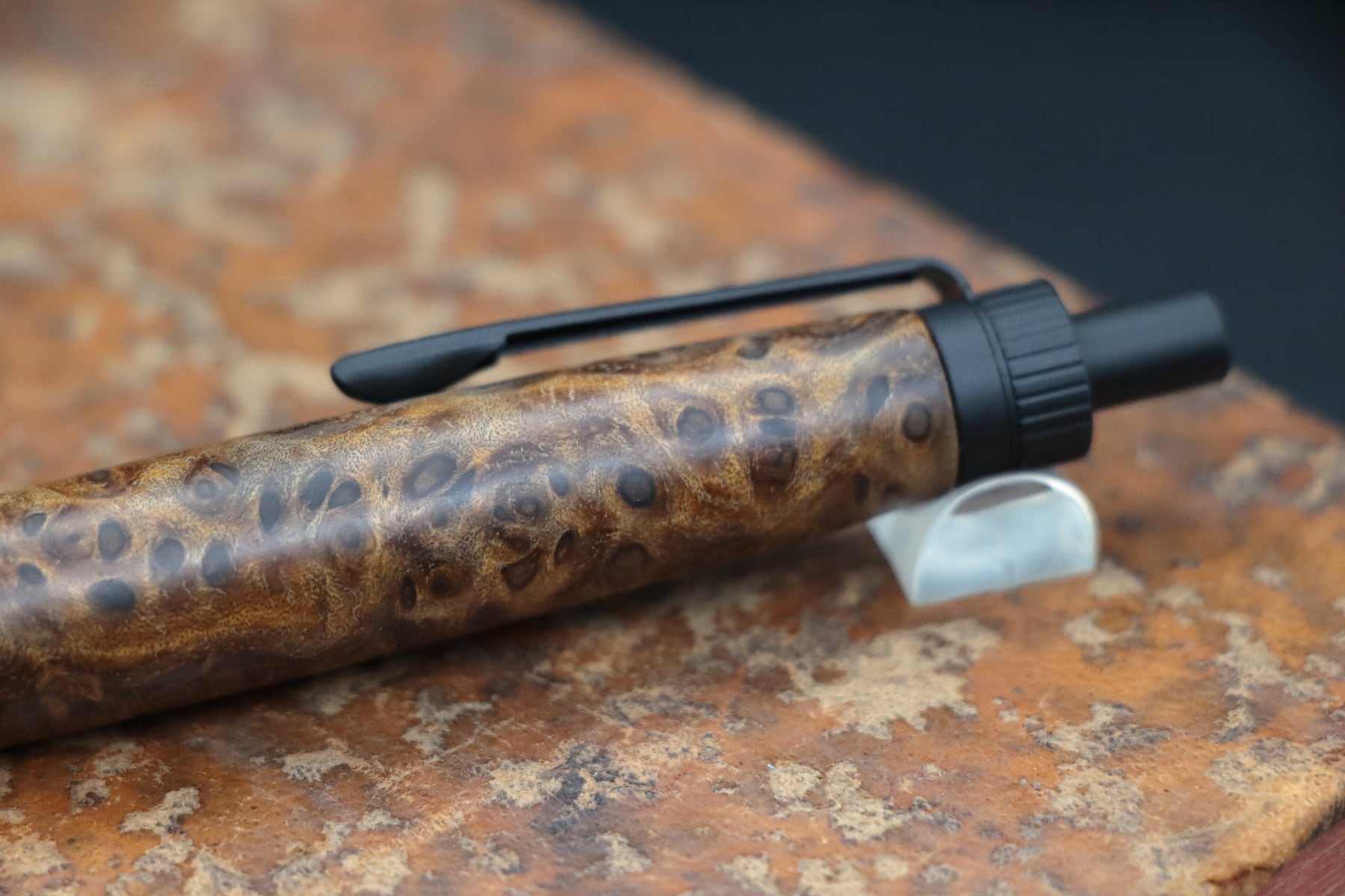 日本ではほとんど紹介のないタイ原産のクラボク(ワイルド・アーモンド)のバール(瘤材)というとても希少な材料で作ったペンをご紹介します。