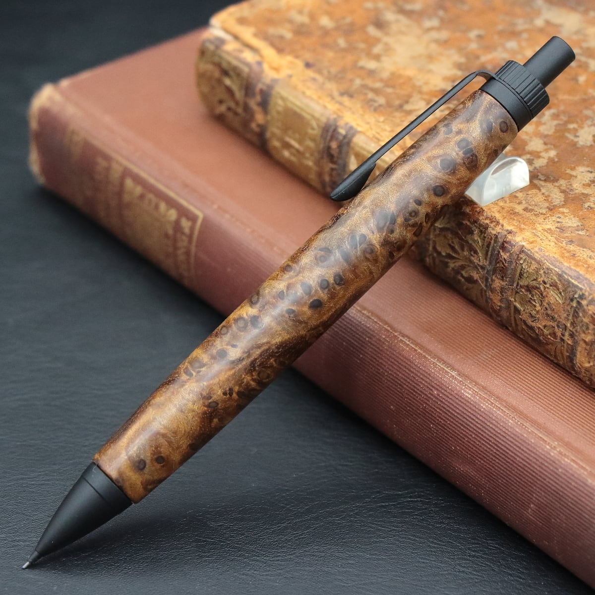 「超希少材 ワイルドアーモンドバール 瘤杢 ブラックアイ・Pencil 0.5mm」木軸シャープペンシル Viriditas銘木ペン