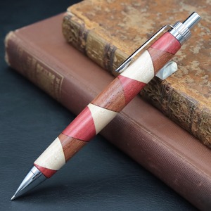 「世界の銘木の寄木 トリコロール ピンク・Pencil 0.5mm」木軸シャープペンシル Viriditas銘木ペン
