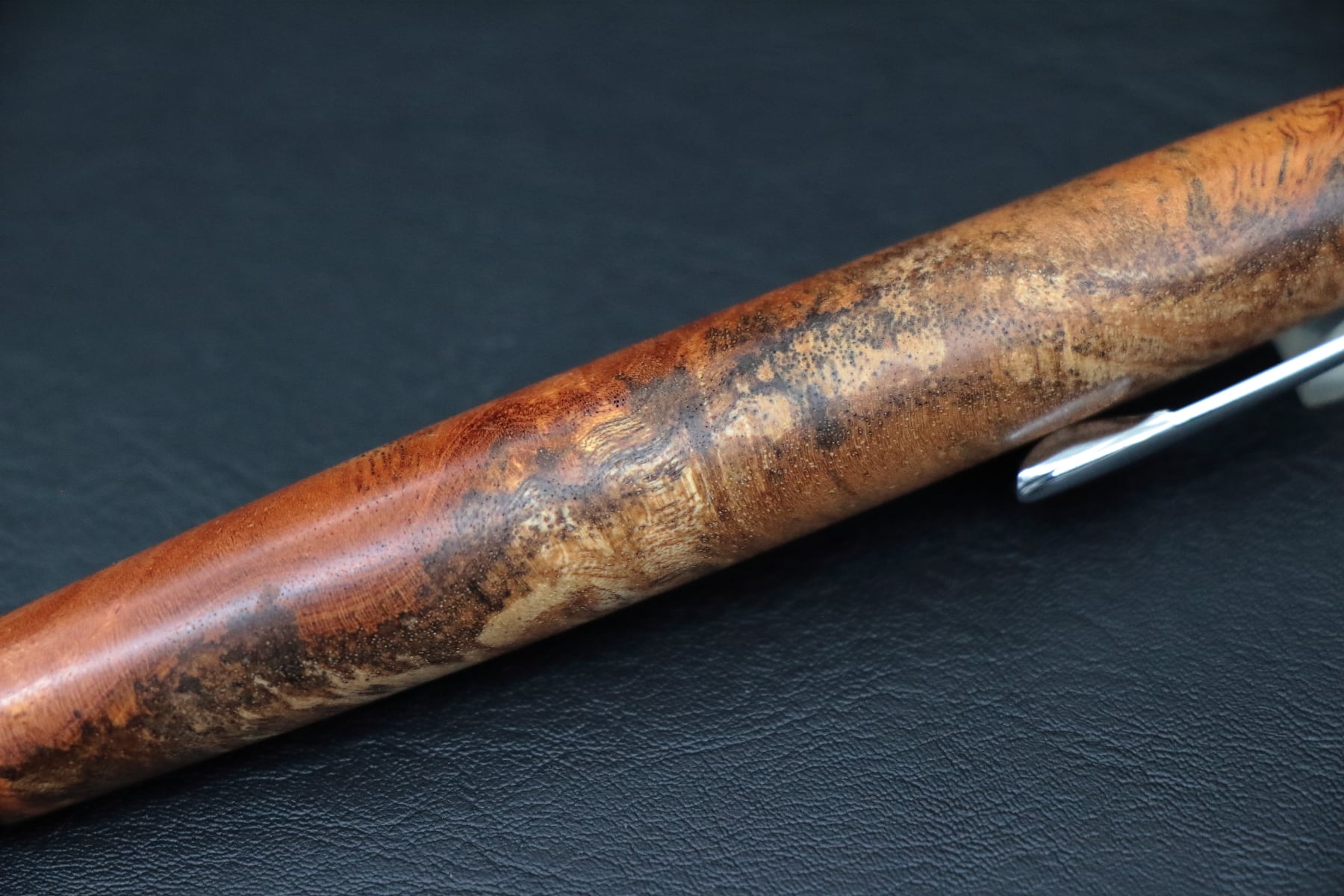 世界中の人々が希求し愛でるマホガニーの魅力とスポルテッド材の強烈ともいえる個性を兼ね備えた軸をぜひご覧ください。