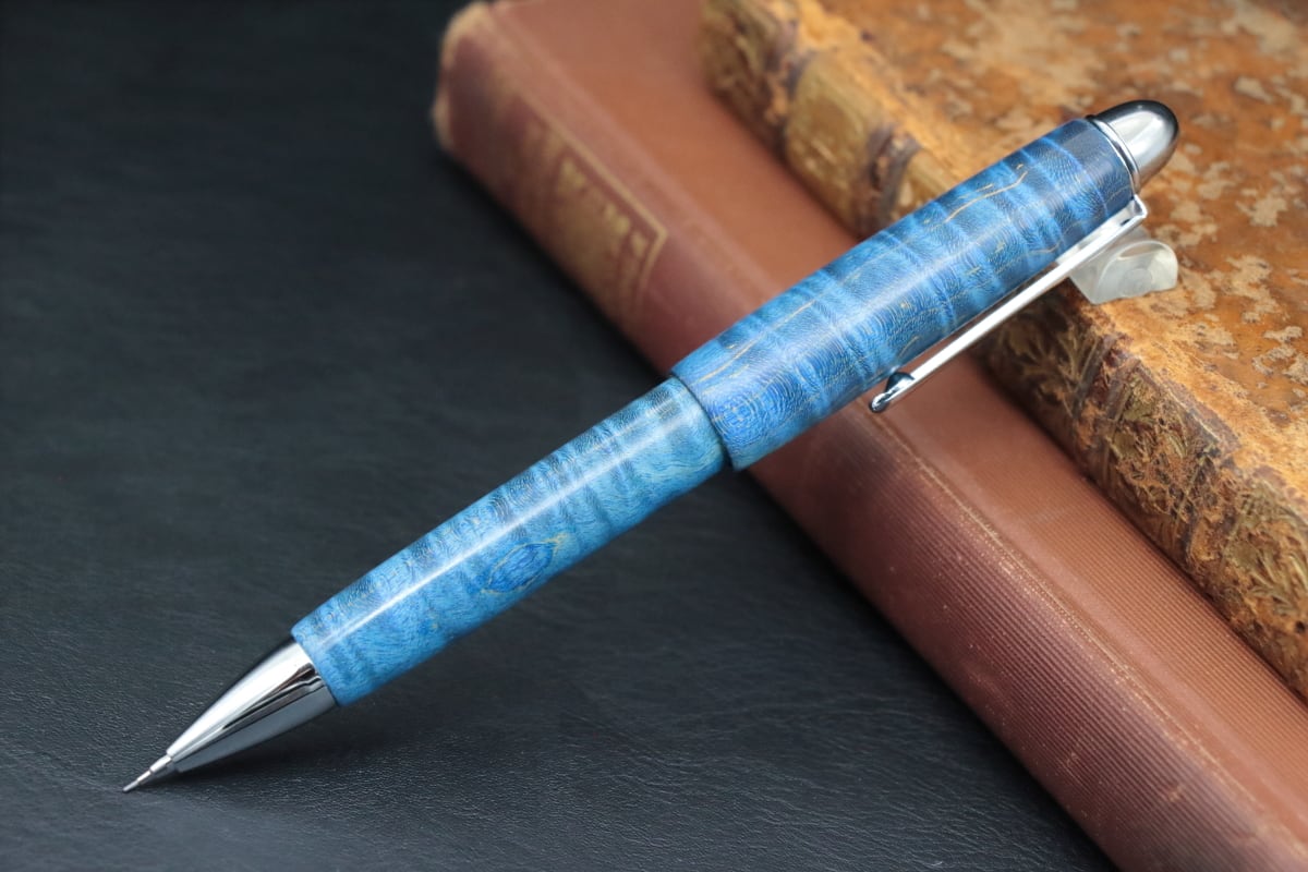 「スタビライズドウッド メイプル 縮杢 ブルーファントム2・多機能ペン」Viriditas 木軸ペン 銘木ペン