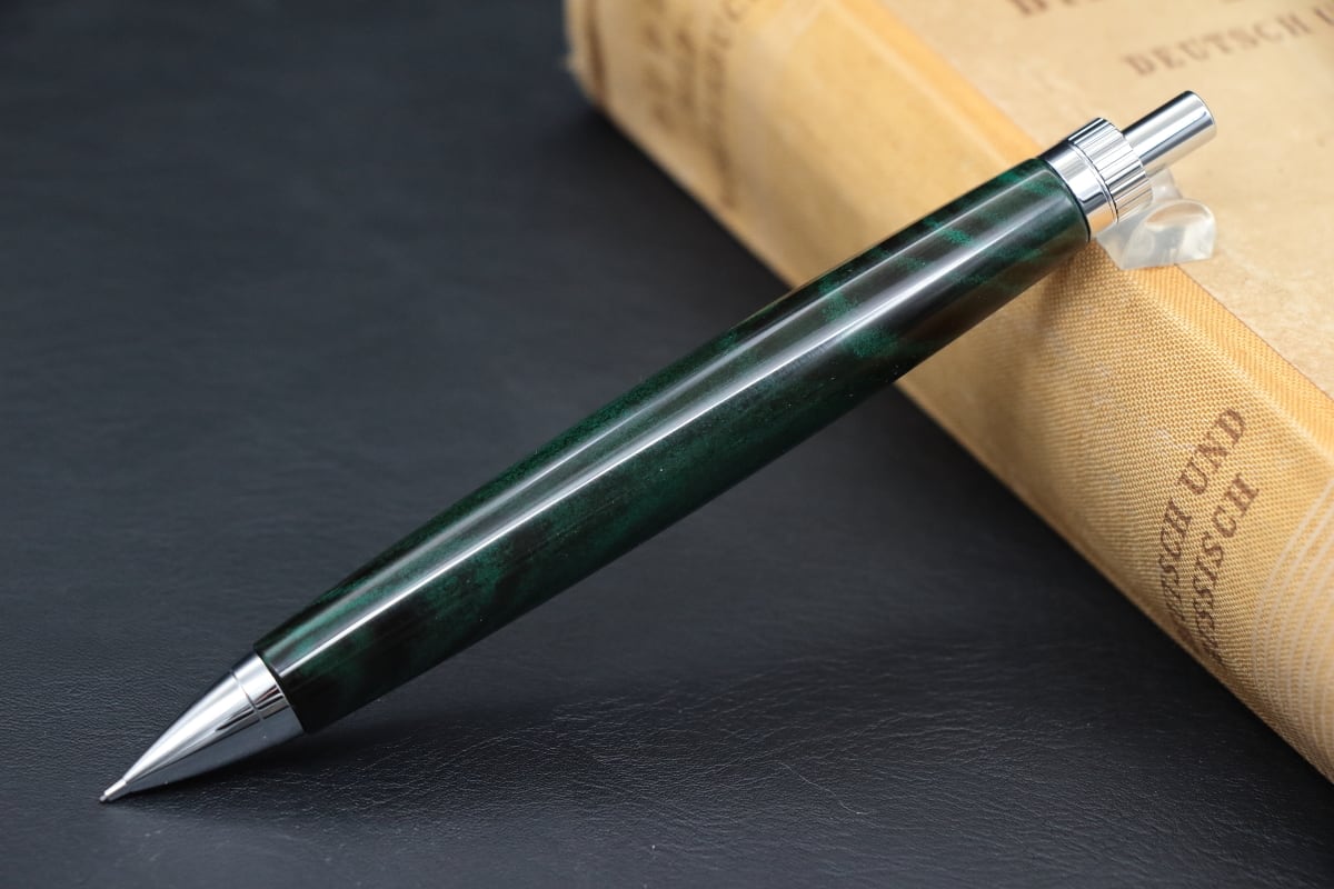 「時代を超える懐古的素材 エボナイト 深緑色・Pencil 0.5mm」手作りシャープペン Viriditas 手作りペン