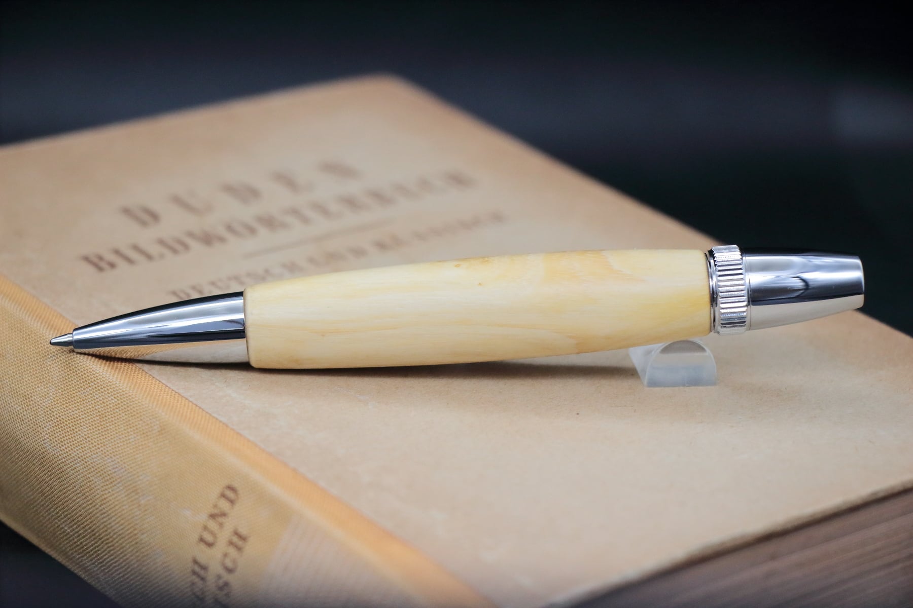 今回の作品は、道路の拡張のため伐採されてしまった貴重な長崎産のレモンの果樹を、工房の奥でゆっくりと乾燥させ、数年がかりでやっとペンに仕立てた品になります。レモンは果樹用に栽培されるため、通常は樹形は小さく低く仕立てられており、また、果樹としての寿命も長いことから、木材としての流通がほとんどない貴重な材です。