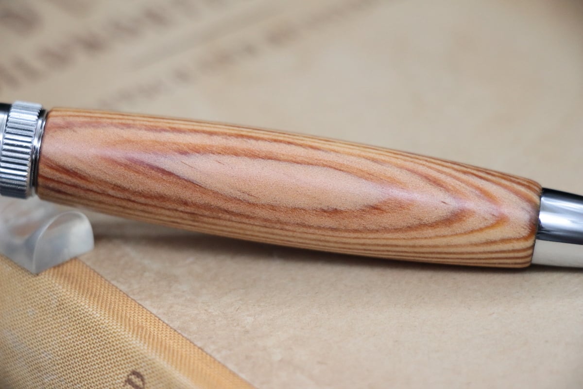 今回のペンは伐採より30年以上を乾燥保管されていた貴重な備蓄材で制作致しました。