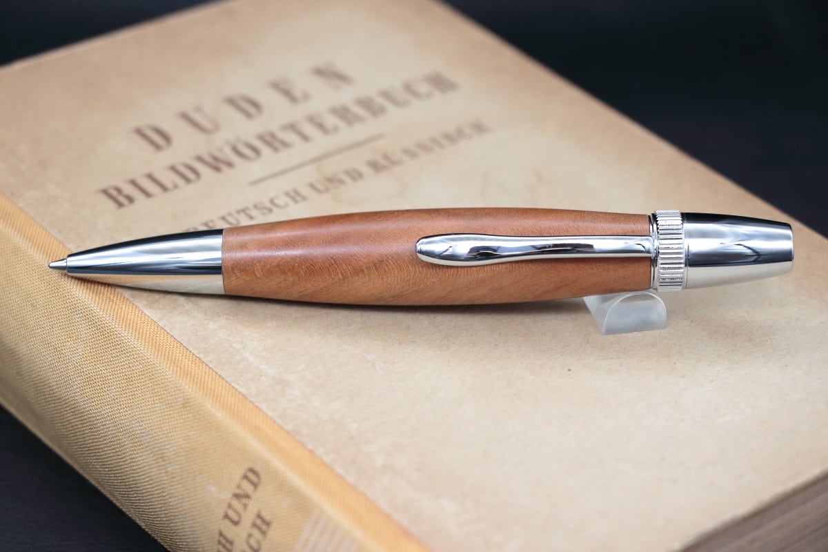 偶然分けて頂けたこちらの材を当工房にてじっくりと自然乾燥させペンになるまでに数年間の月日をかけています。