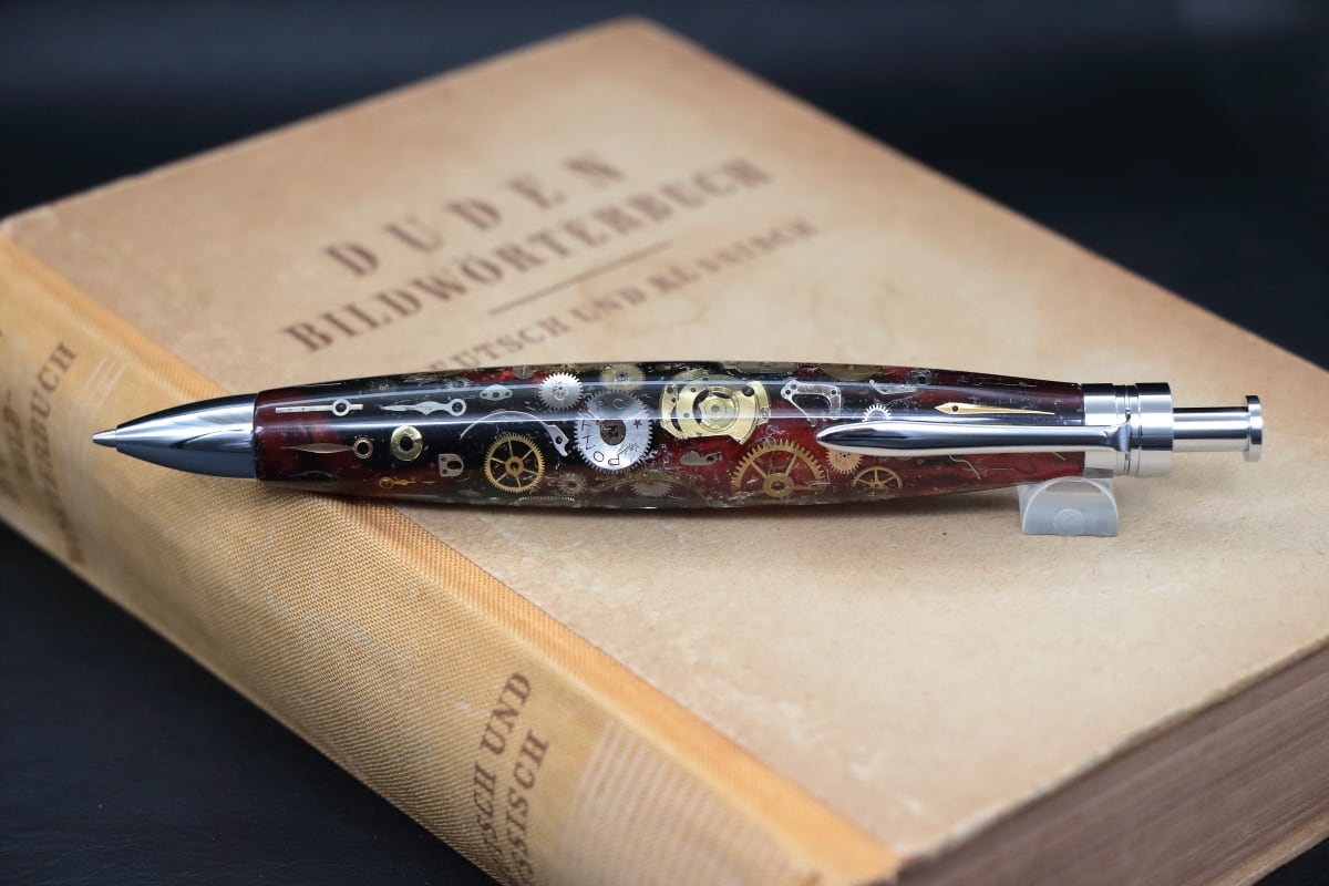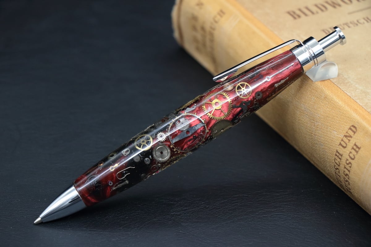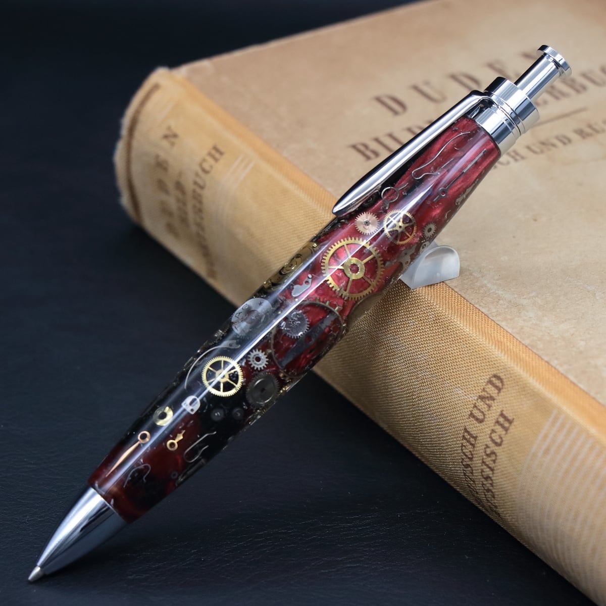 「ヴィンテージ機械式時計パーツのペン軸 赤色系・Pencil 0.5mm」手作りシャープペン Viriditas 手作りペン