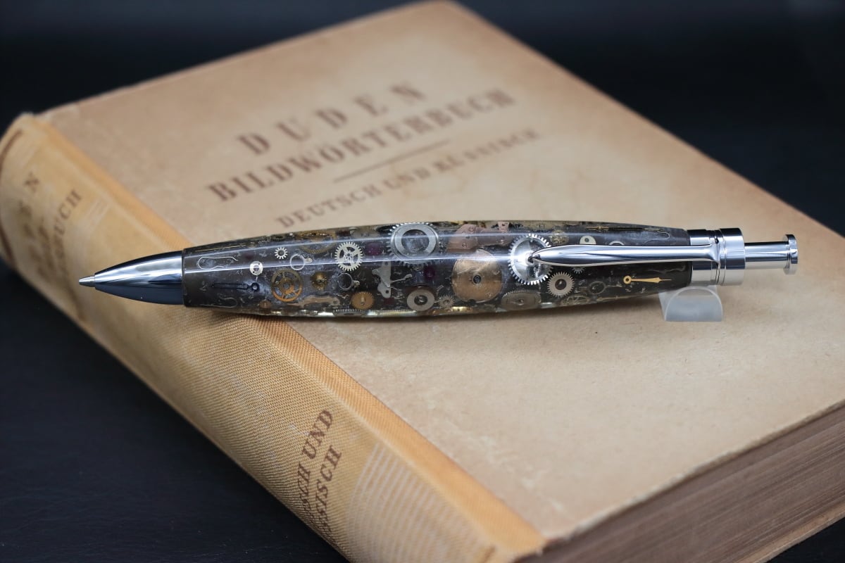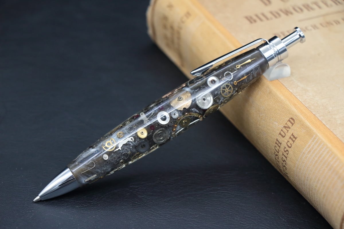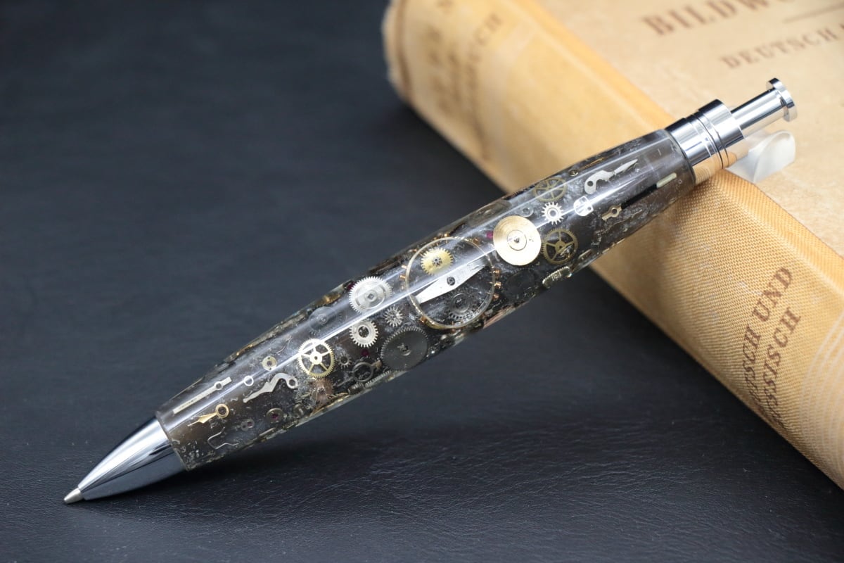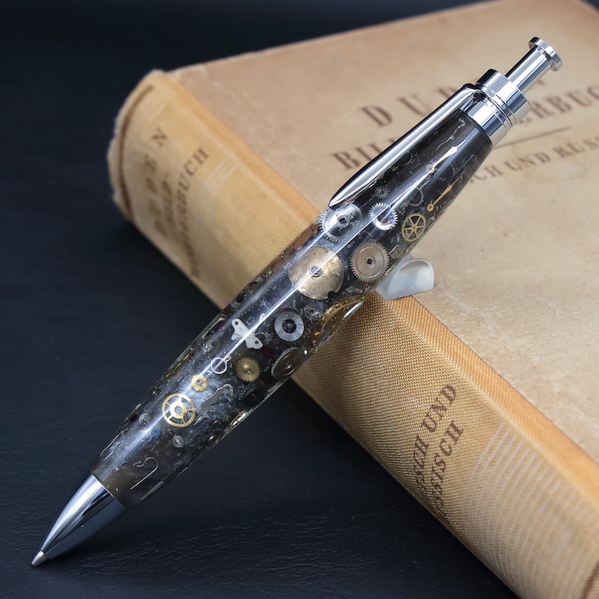 「ヴィンテージ機械式時計パーツのペン軸 黒色系・Pencil 0.5mm」手作りシャープペン Viriditas 手作りペン