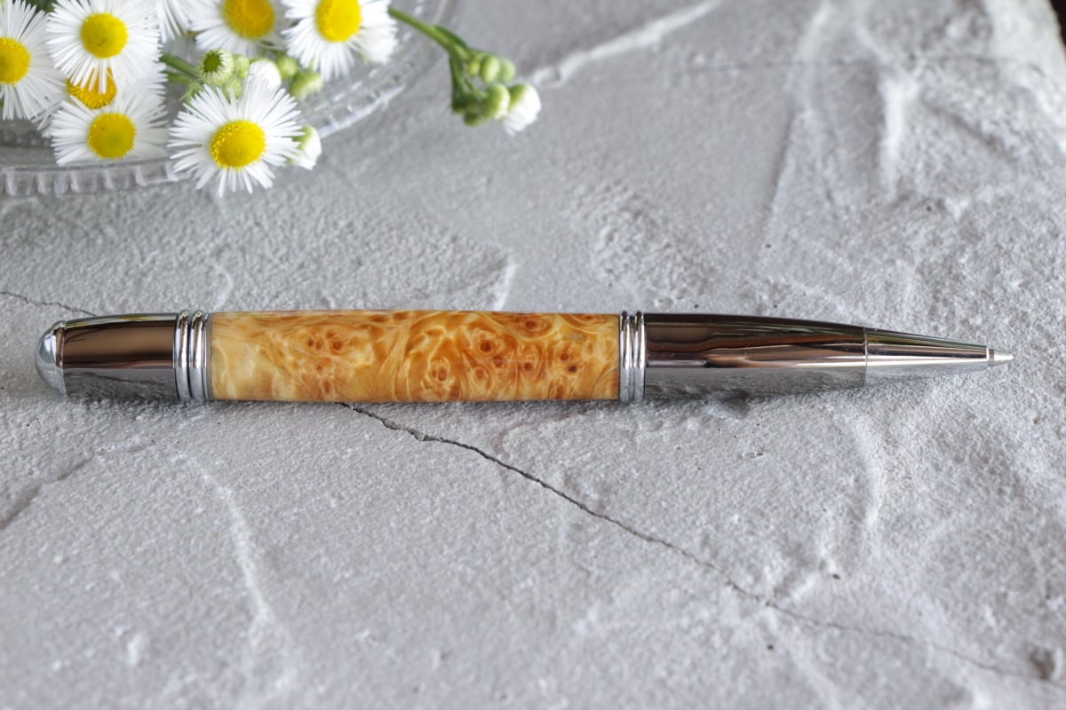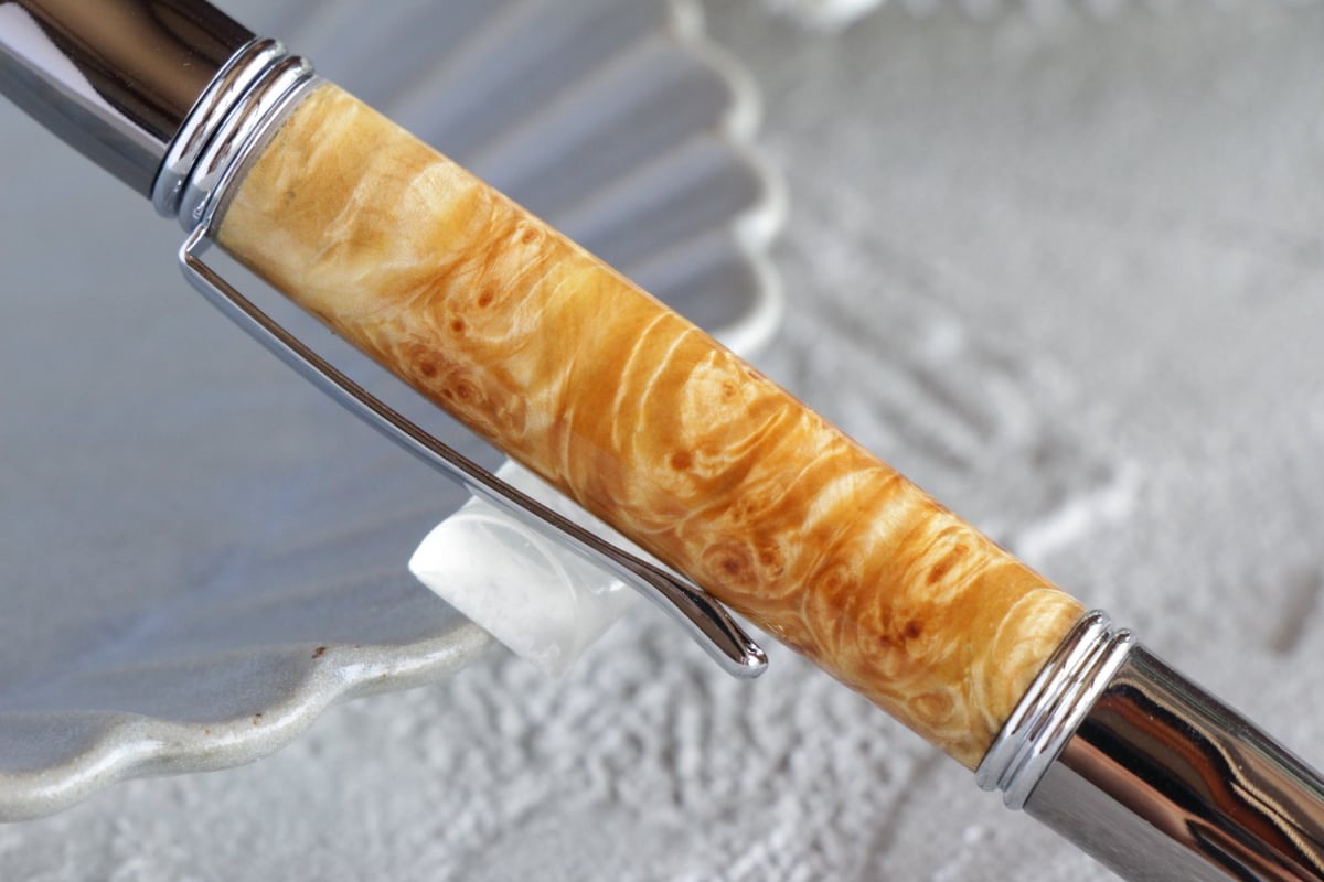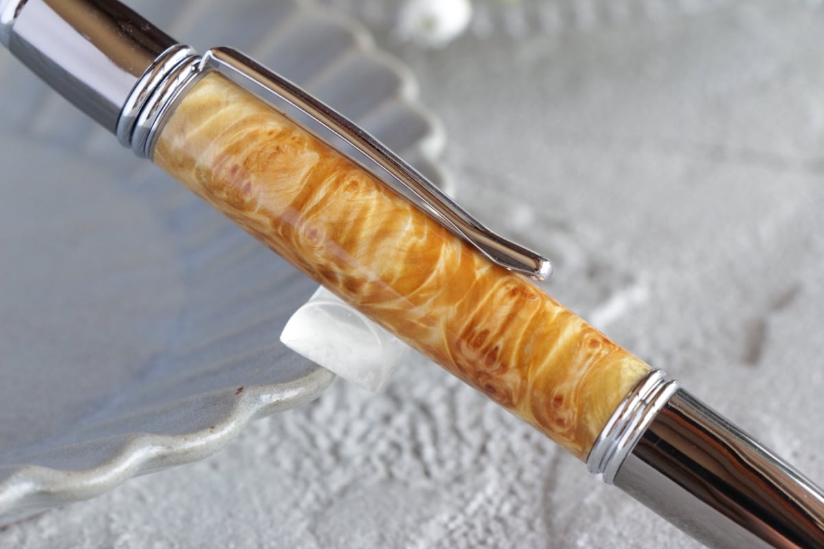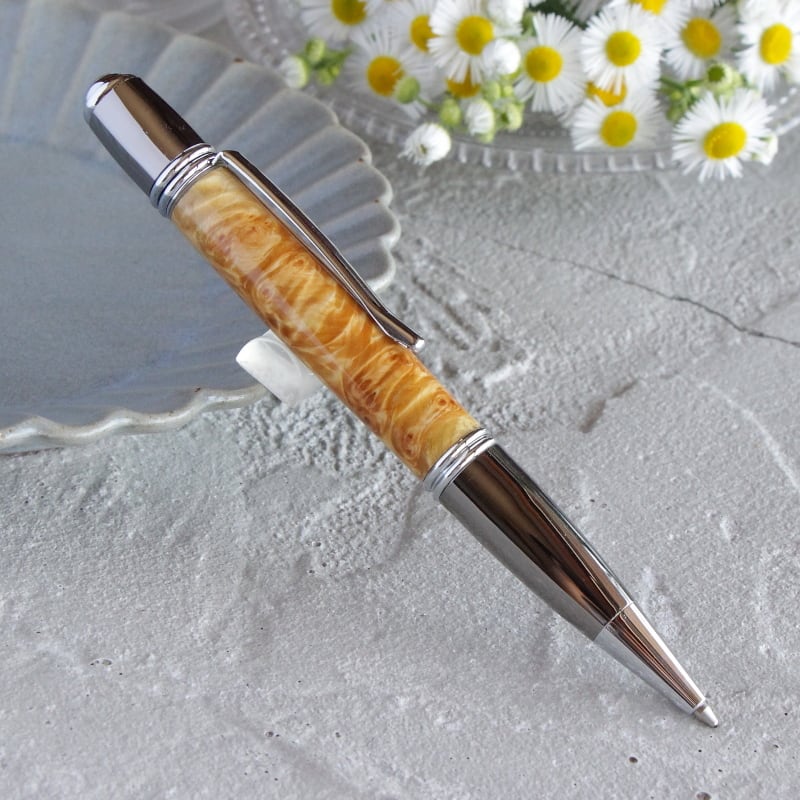 「 希少部材 ハードメイプルバール 瘤杢 葡萄杢 特上 グロス塗装・Primus」木軸ボールペン 銘木ペン Viriditas